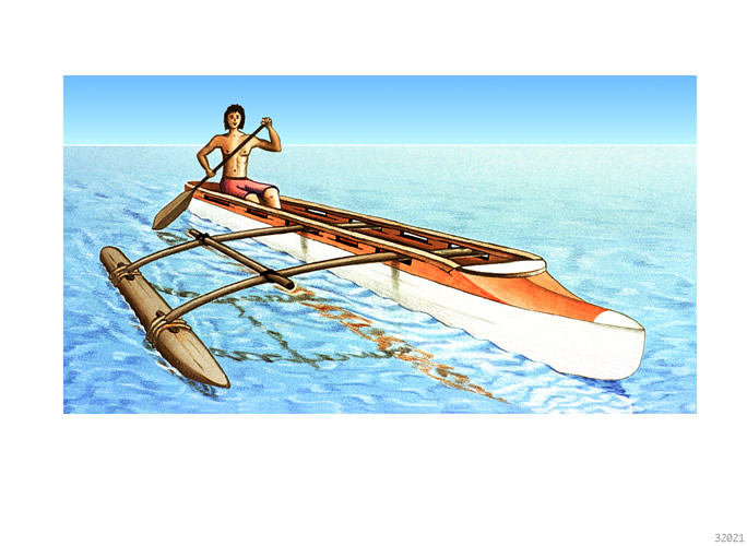 il Das Prinzip des traditionellen Auslegerbootes • Pastellstifte, Airbrush, Tempera