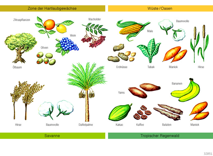 il Kulturpflanzen und Vegetationszonen in Afrika • Pastellstifte, Tempera