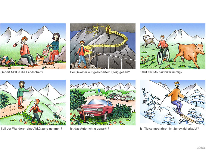 il Richtiges Verhalten im Hochgebirge • Illustration, Cartoon • Pastellstifte, Airbrush, Tempera