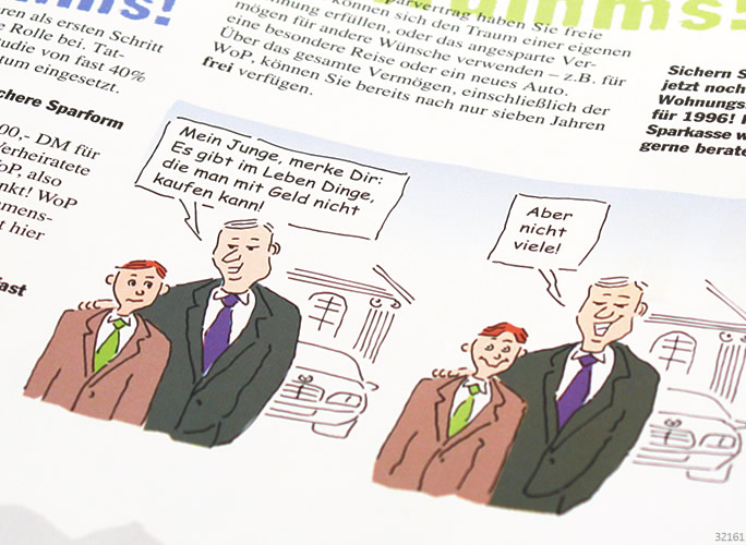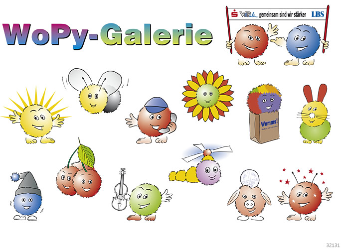 il LBS Marketing-Aktion mit Geschenk-Artikel „Woppy“ • Federzeichnungen, digital koloriert